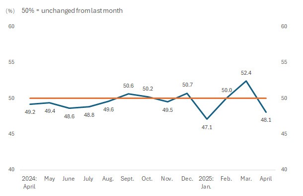 The prosperity index of China’s cotton textile industry was 48.1% in April, representing a decline of 4.3 percentage points from March this year. Beginning in early April, Trump initiated a global tariff war, leading to a sharp downturn in financial markets and negative foreign trade expectations. The cotton textile industry maintained a cautious mindset, with sluggish turnover and a challenging production and operational situation. The prosperity index fell below the boom-bust line, and several indicators suggested a relatively significant decline.