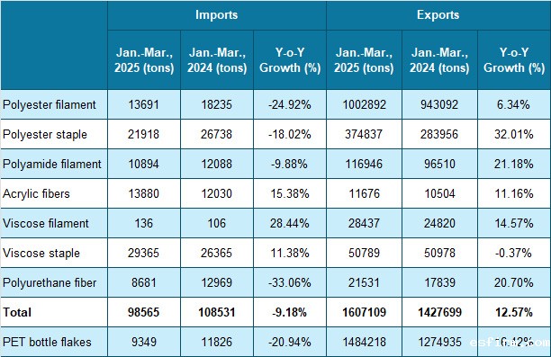 Table 2: Foreign Trade of Chemical Fiber Products in Q1, 2025