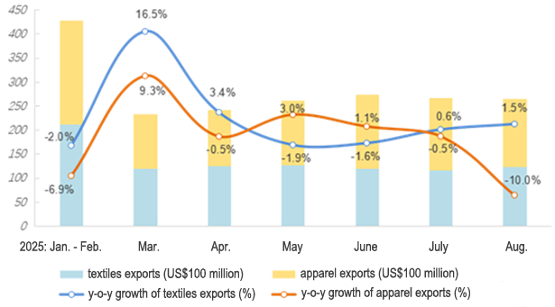 Figure: Monthly Statistics of China’s Textiles and Apparel Exports from January to August, 2025