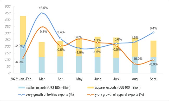 Figure: Monthly Statistics of China’s Textiles and Apparel Exports in the First Three Quarters, 2025