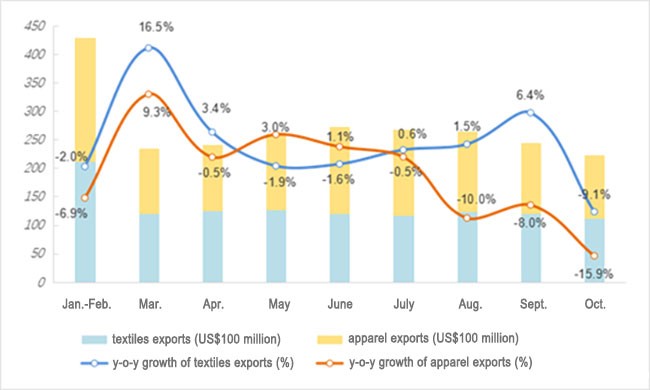 Figure: Monthly Statistics of China’s Textiles and Apparel Exports from January to October, 2025